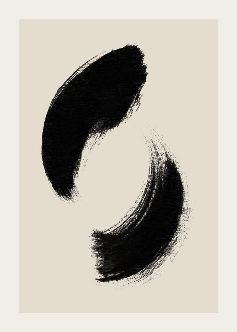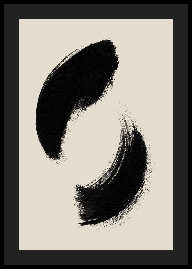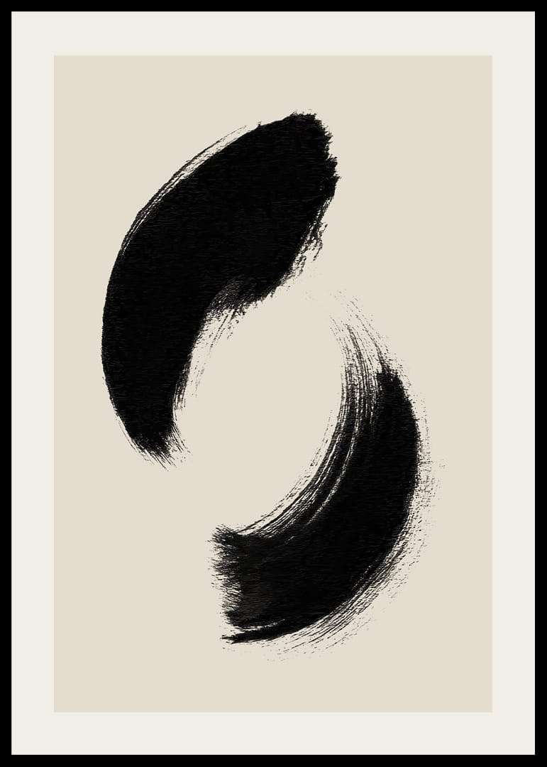 Deze poster legt de tijdloze schoonheid van een paar vloeiende penseelstreken perfect vast en creëert een gevoel van rust en eenvoud. De krachtige, zwarte strepen tegen de zachte achtergrond creëren een harmonieuze balans die de aandacht trekt en uitnodigt tot bezinning. Met zijn minimalistische elegantie vormt deze poster een natuurlijke aanvulling op elke kamer en verspreidt hij een vredige sfeer door zijn subtiele kracht.