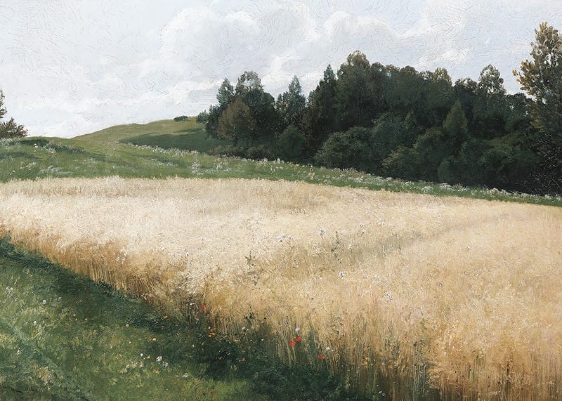 Poster met het schilderij "Das Haferfeld" van de Oostenrijkse kunstenaar Adolf Kaufmann uit het jaar 1906.
