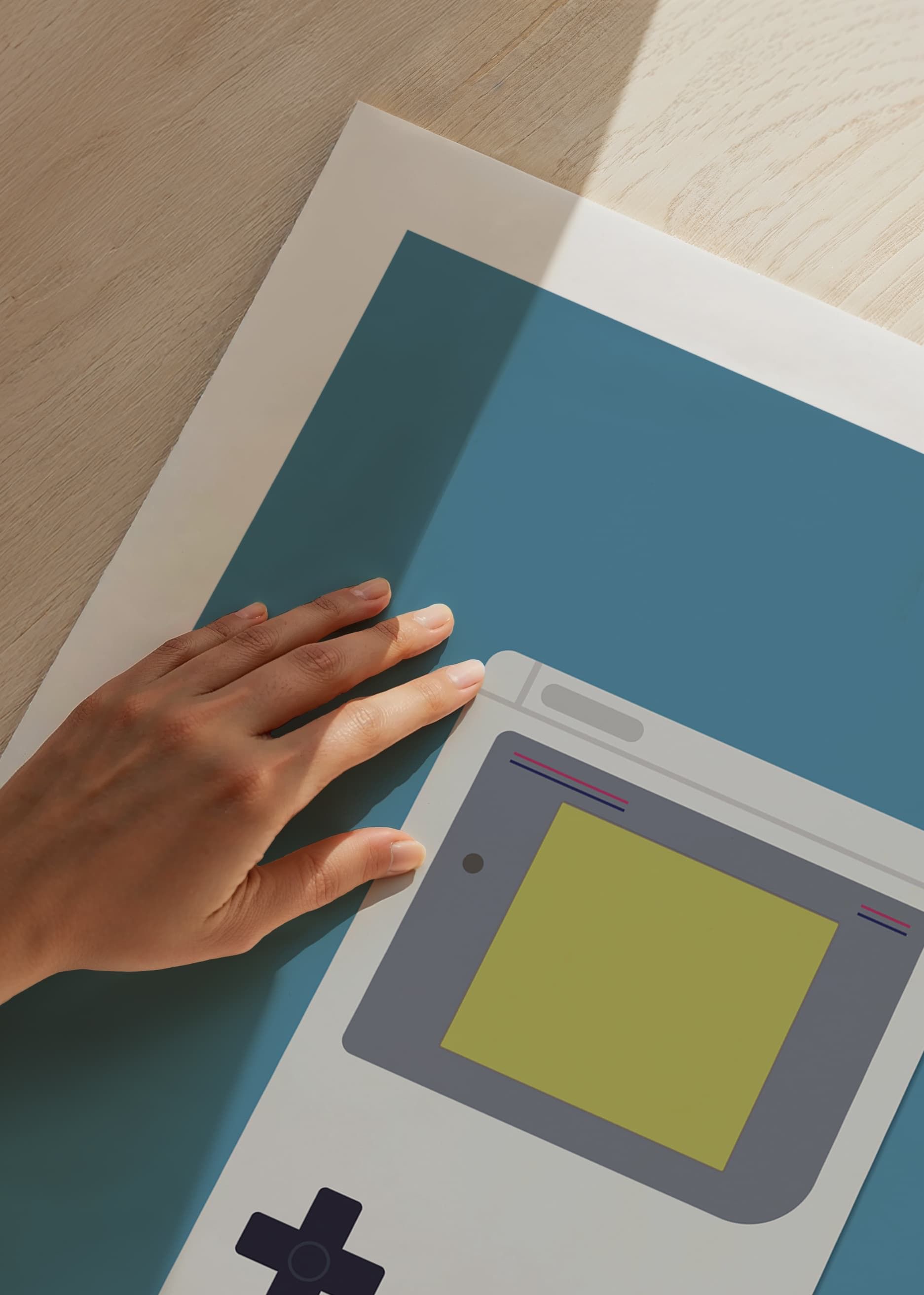 Creëer een retro gaming-gevoel in je huis met onze iconische "Retro GB"-poster. Het eenvoudige en strakke ontwerp met een klassieke draagbare gameconsole tegen een vintage blauwe achtergrond is een eerbetoon aan de gloriedagen van gaming. Perfect voor de speelkamer, jeugdkamer of als nostalgisch detail in de woonkamer. Laat deze poster je herinneren aan urenlang speelplezier en avontuur onderweg.