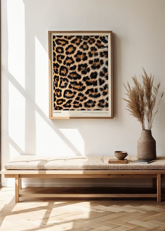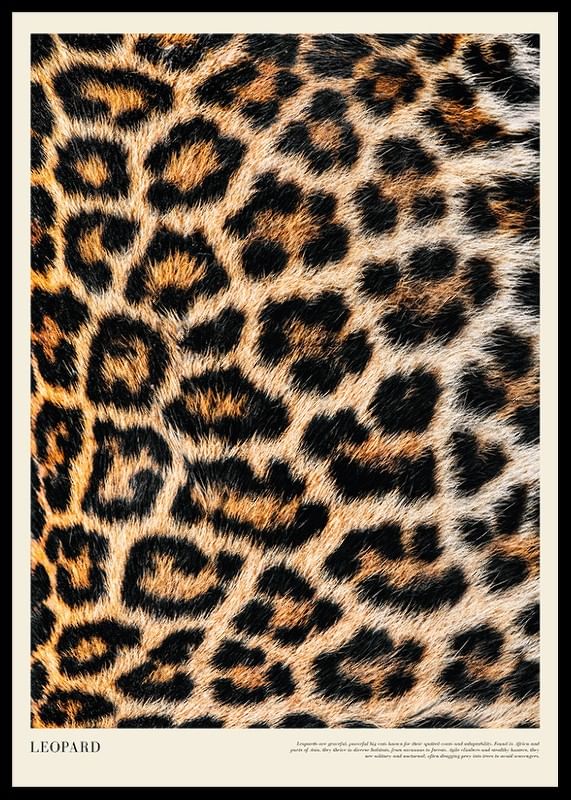 Haal de schoonheid van de natuur in huis met deze poster die het iconische patroon van het luipaard tot in detail weergeeft. Een perfecte keuze voor wie een gevoel van wilde elegantie en uniciteit in uw interieur wil creëren.
